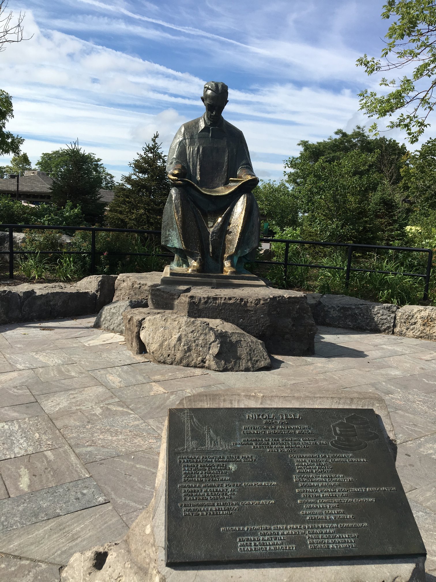 Two Nikola Tesla Monuments at Niagara Falls Since his childhood, Tesla himself had dreamed of harnessing the power of the great natural wonder - Niagara River. And in late 1893, his dream became a reality, when Westinghouse was awarded the contract to create the powerhouse. When the switch was thrown, the first power reached Buffalo at midnight, November 16, 1896. The Niagara Falls Gazette reported that day, "The turning of a switch in the big powerhouse at Niagara completed a circuit which caused the Niagara River to flow uphill." The first one thousand horsepower of electricity surging to Buffalo was claimed by the street railway company, but already the local power company had orders from residents for five thousand more. Within a few years the number of generators at Niagara Falls reached the planned ten, and power lines were electrifying New York City. Broadway was ablaze with lights; the elevated, street railways, and subway system rumbled; and even the Edison systems converted to alternating current. There are two Nikola Tesla monuments at Niagara Falls: Monument at American side of Niagara Falls: Monument at Canadian side of Niagara Falls: ![]() Niagara Falls Map with marked Nikola Tesla Monuments: |